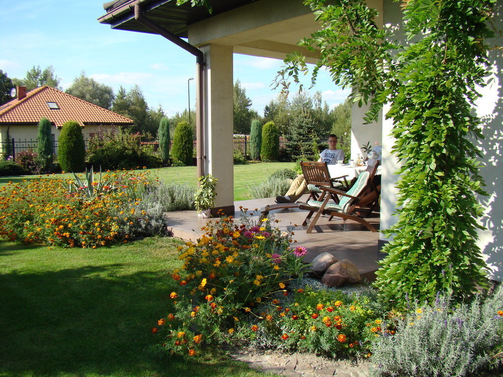 The outdoor terrace is situated on the south/west of the house where you can sit and enjoy the view, eat meals, read a book, enjoy the views flowers, a birdlife and generally the garden around the house. In the summer it is nice to have a lunch outside, table, chairs, everything you may need is available.