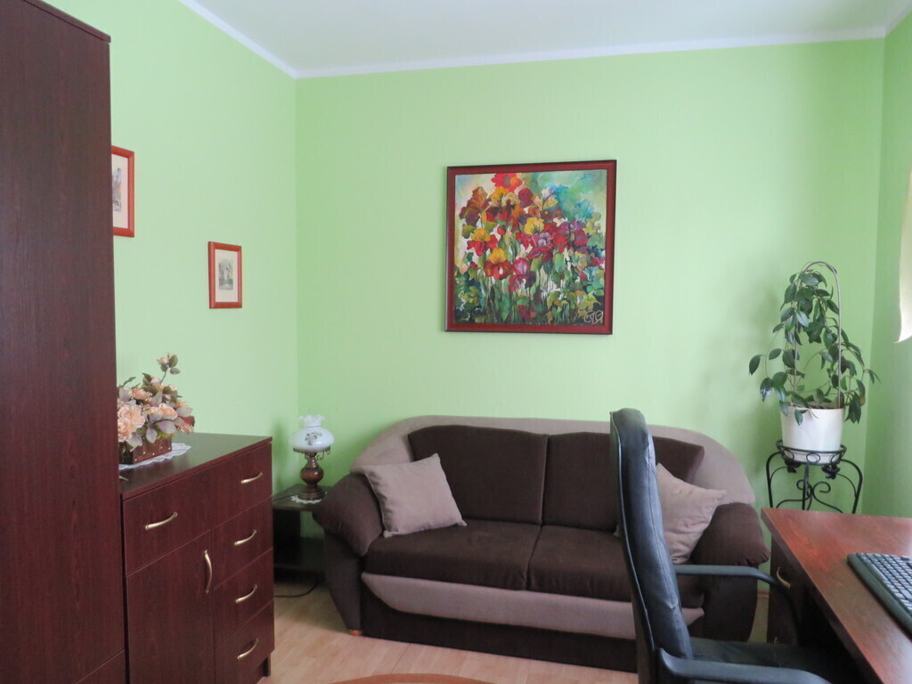 The ground floor contains living room, kitchen bathroom, small room (with computer) with overlook to the garden. Kitchen is well equipped with microwave, electric 4-burner cooker, big fridge, oven, coffee machine and lots of kitchenware.