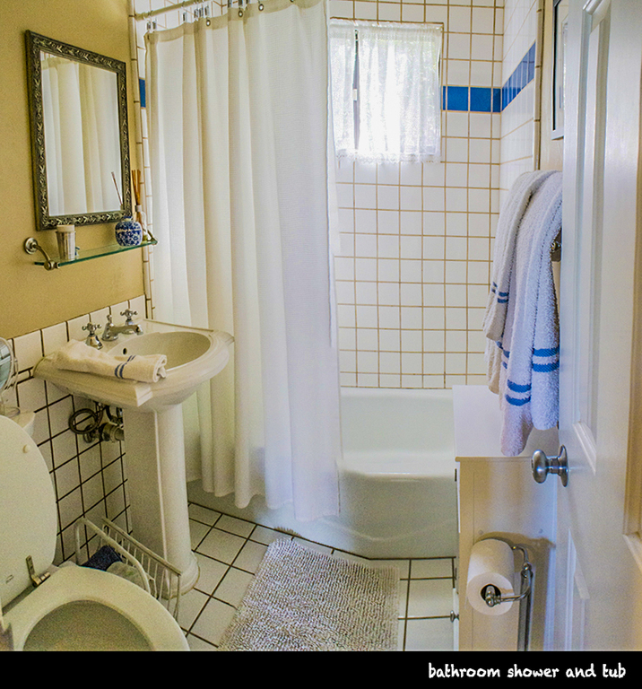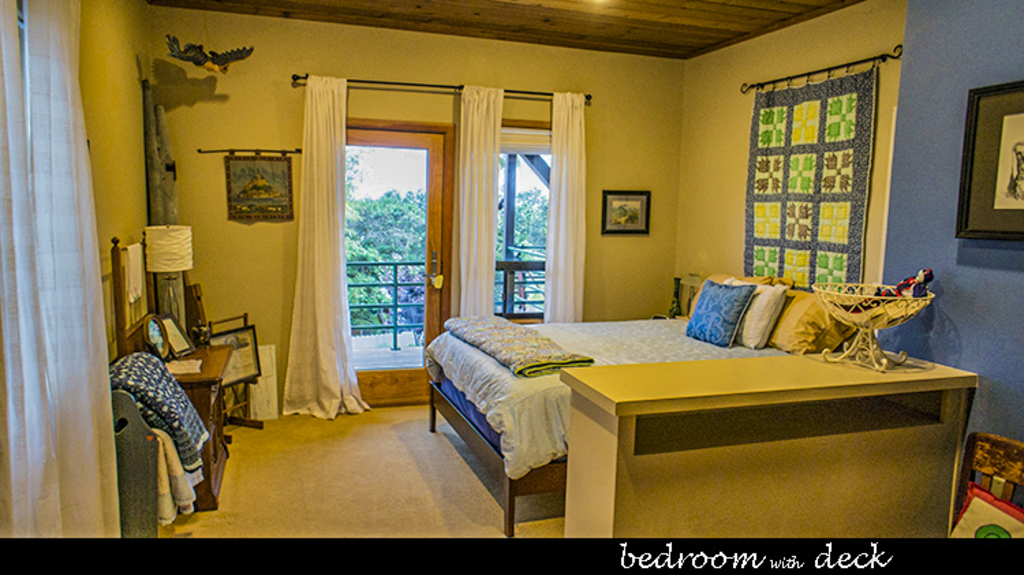 Our apartment is 950 sq ft (90 sq meters) The apartment includes a kitchenette, large deck, living and dinning areas, bedroom and access to garden area and one full bath. We are very proud of our home, and you will find it relaxed and warm.