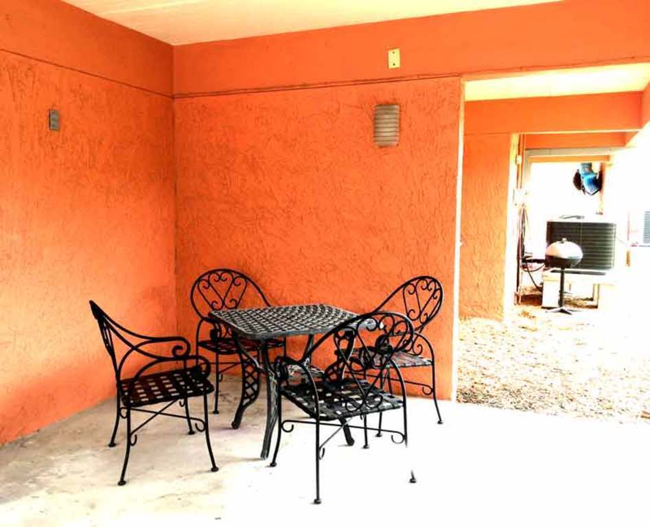 Our outside temperature is lowered by our closeness to the Gulf. We like to sit on the beach at sunset and enjoy the breeze off the water.