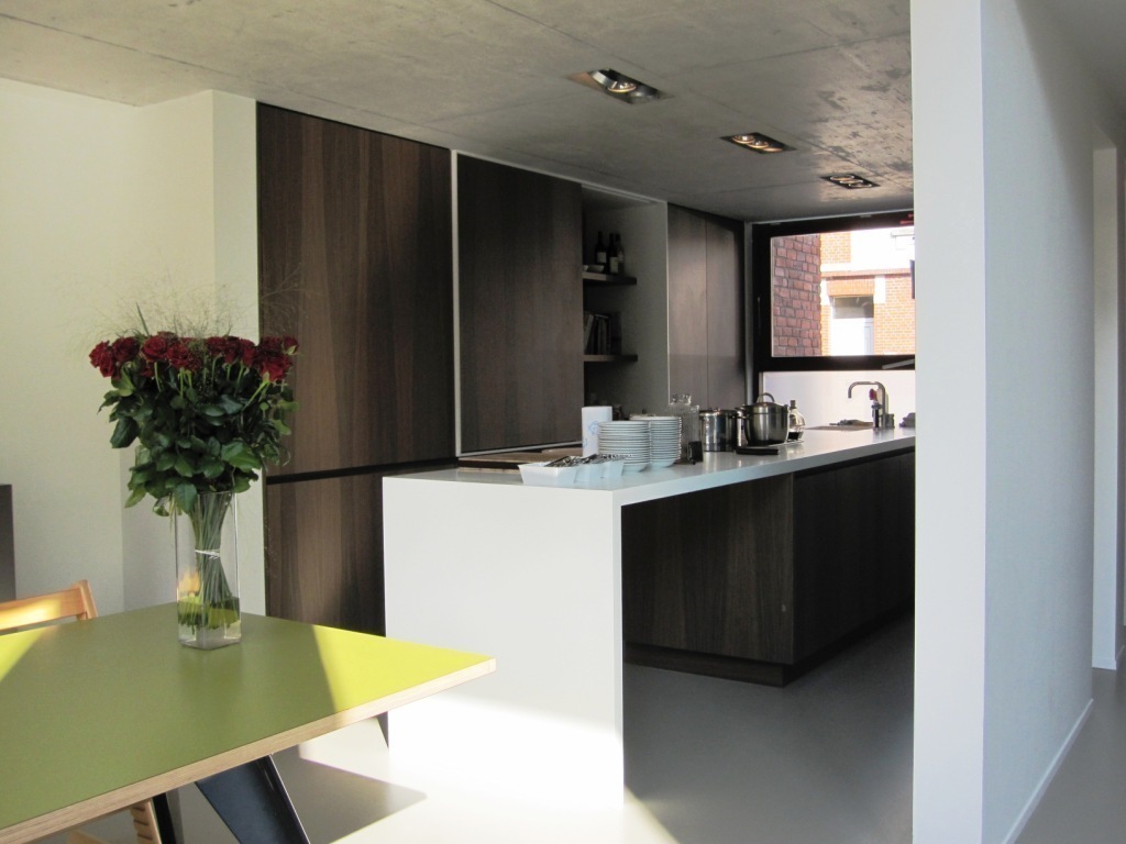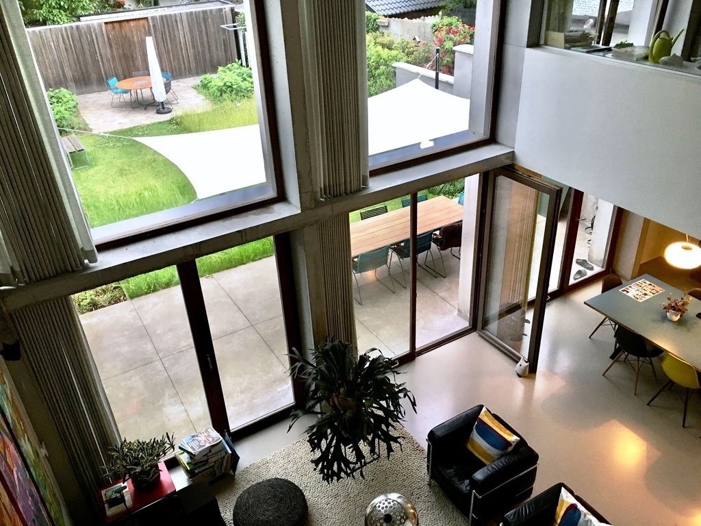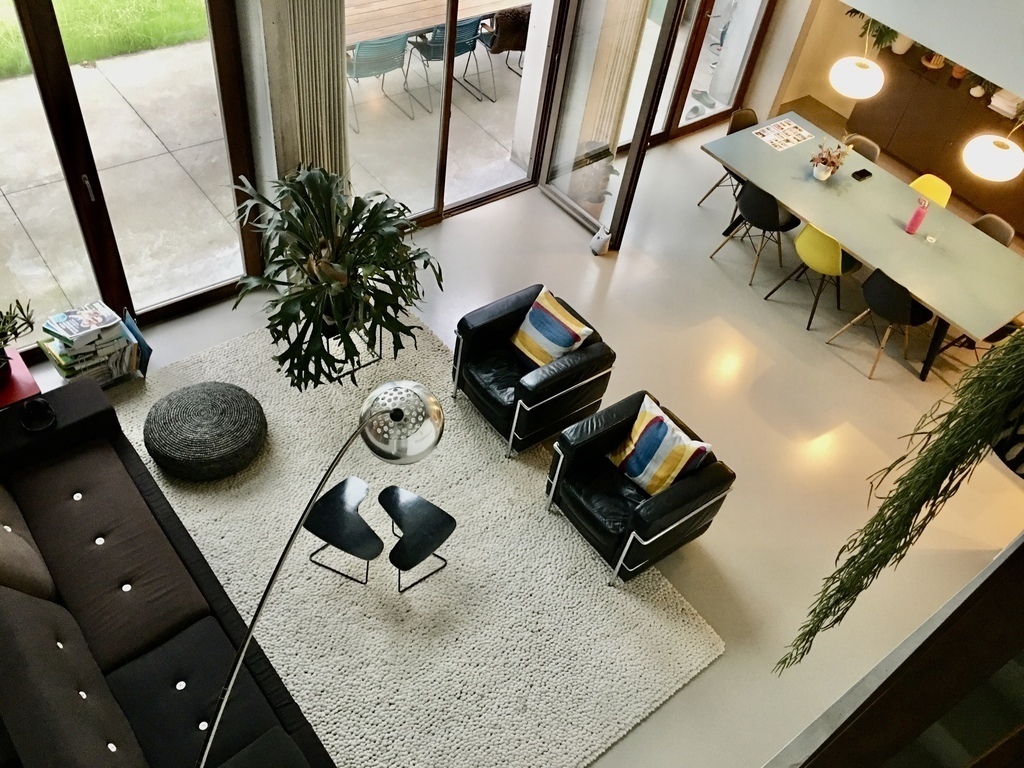 Our house has got a nice garden (9mx18m) facing South-West with two terrasses. On the ground level, next to the living space (with a nice void) and the kitchen is a lovely terrace (3mx9m).