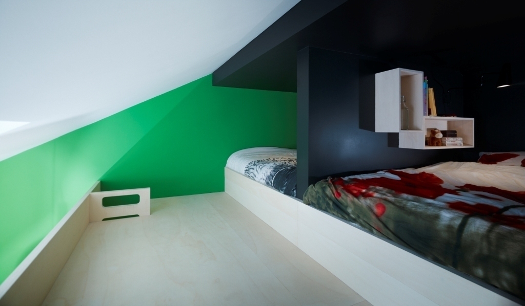On the second floor we've got three large bedrooms. One for the parents with electric adjustable double bed (180cm) and two large play- and bedrooms for the children. Each large room of the children has great mezzanine for sleeping with 2 double beds (160cm). So in total we have 5 double beds (= 10 persons). On this floor there are also two bathrooms with raindance showers!