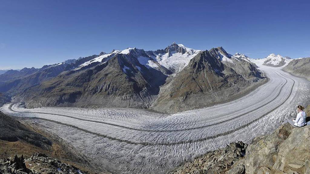 The famous glacier Aletsch is impressive in every season.