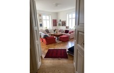 Our flat is on the fourth floor in a 120 year old house in the center of Stockholm. It is 160 m2, with two fireplaces and 3.20m (10.4ft) high ceiling. We have two bedrooms: one with two single beds (105x200 cm each) and one with a double bed (140x200 cm). Additionally, we have a single bed (90x200 cm) that can be placed in either bedroom if needed. We also have a backyard where you can relax and have a BBQ!
