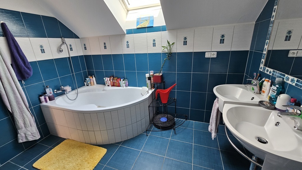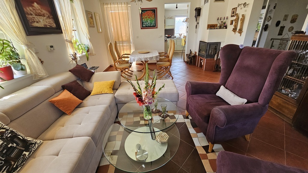 There is a roofed fireplace in the garden and of course some appliances for children to play (incl. a trampoline) and for us to rest. You can enjoy an ecological lake in the garden - it is ready for your relax and swimming.
