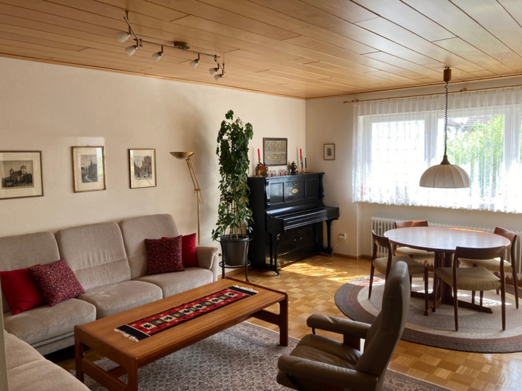 Spacious and comfortable apartment (maisonette, 150 m2) in a two family house, occupying the whole 1st floor plus the attic. 3 bedrooms (1 master-bedroom with king-sized-bed, two single bedrooms), 2 bathrooms. There is a big balcony (south side) and a lovely garden with a lot of flowers, a barbecue and garden furniture. The garden has a separate entrance and is used only by ourselves. Not suitable for small children, teenager welcome.