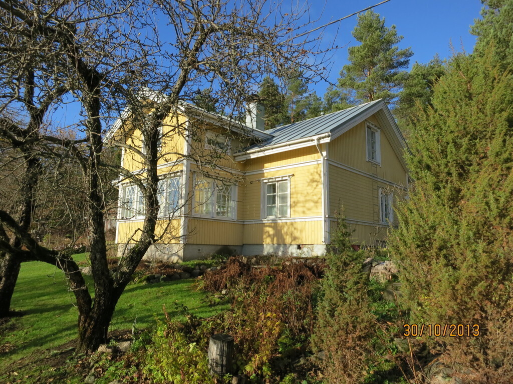 Our house has three bedrooms, dining room, veranda, kitchen,living room and utility room. Altogether 140 m2. In our plot of land we have a traditional old sauna, a "sun room", a green house and a vegetable garden.