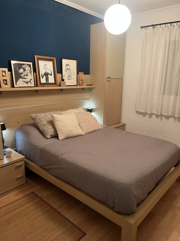 The flat has a small yard with many plants, 2 bedrooms (a double with kind of bunk beds and a double bed room), a small office, one complete bathroom and a well equipped kitchen.