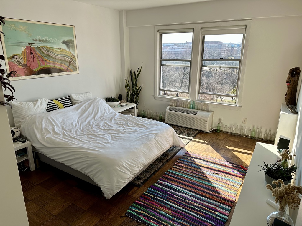 Welcome to Washington DC! My one bedroom top-floor apartment is located in historic Georgetown, across the street from a park and within a 5 minute walk to all the restaurants and shops in Dupont Circle. The apartment has a 24hr door-person in a secure building. It is 81m2/870ft2 and very quiet and clean. It has a very nice view and you can see the Washington Monument. Perfect for a couple as the apartment has one queen-sized bed. The decorations, artwork, and lighting are a bit unique as you might be able to see from the photos. The Dupont Circle metro is a 10 minute walk from the apartment so it's easy to get around without a car. Additionally, Uber and Lyft are easy to use in DC and buses go right outside the front and the back building entrances. Capital Bike share is also available. There are farmers markets on Wednesdays and Sundays and a grocery store (Trader Joes) within a 15 minute walk. In addition to seeing the usual sites in DC, there are quite a few nature paths located nearby.