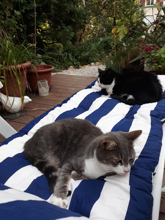 Ours cats Poli and Pepito are discreets pets.They can manage to eat (no need to feed them) and they go out, no problem.