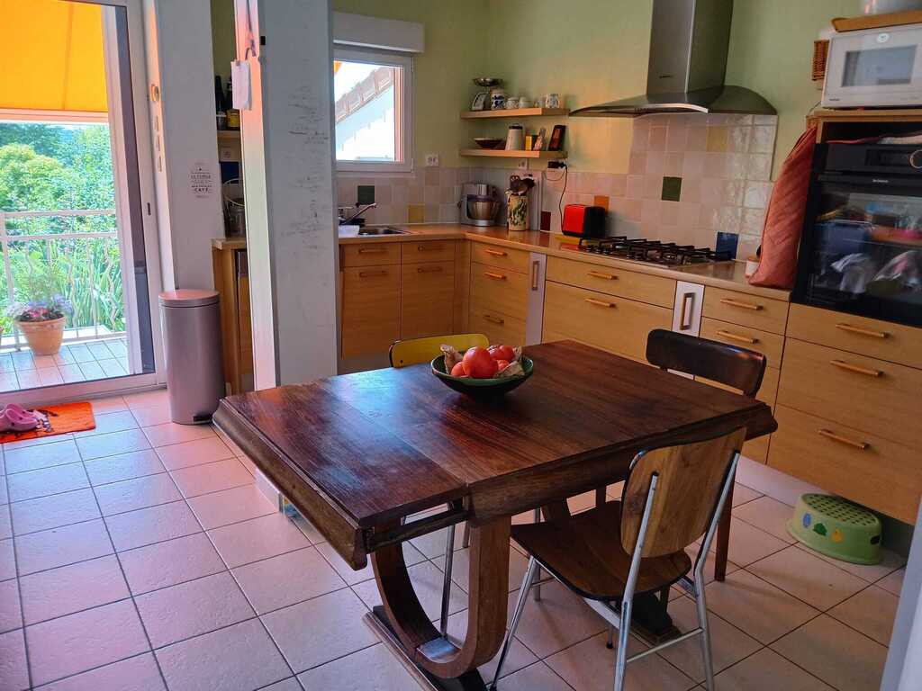 The house (130m2) is on one level and there is a stair to reach the cellar, the garage and the garden (400 m2).
