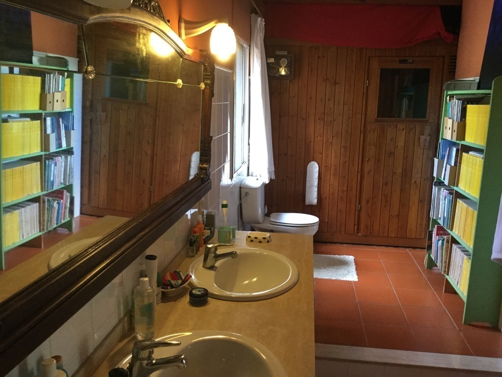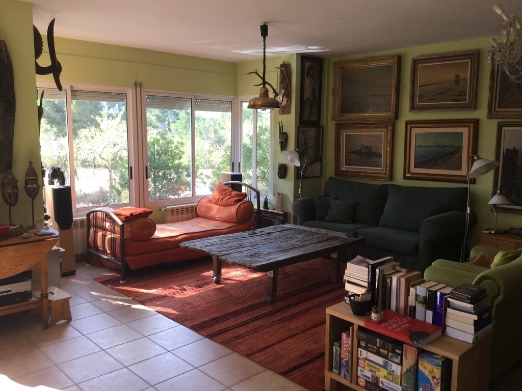 Close to the mediterranean coast. Very comfortable 276 m2. At the ground floor there is a big kitchen and dinner place, the library, a bathroom with shower and a studio. The kitchen is fully equiped with dishwasher, microwave, etc. At the upper floor there are four bedrooms and two bathrooms, a living, a small room for the washmachine and a big terrace. One of the bathrooms is equiped with a sauna.