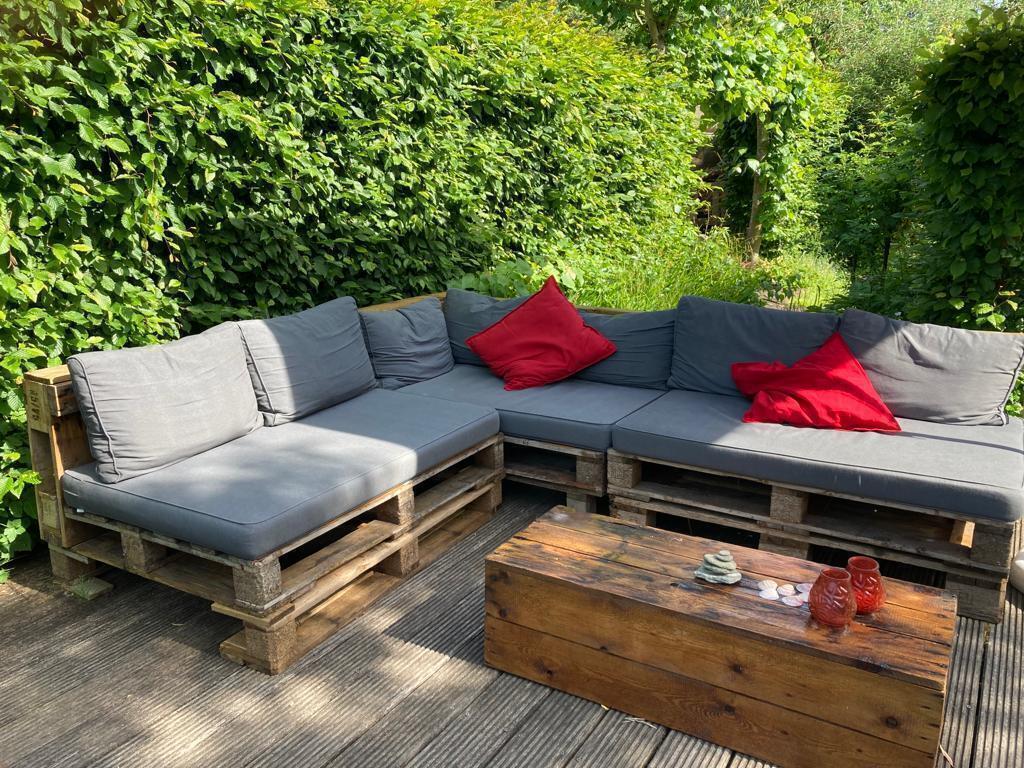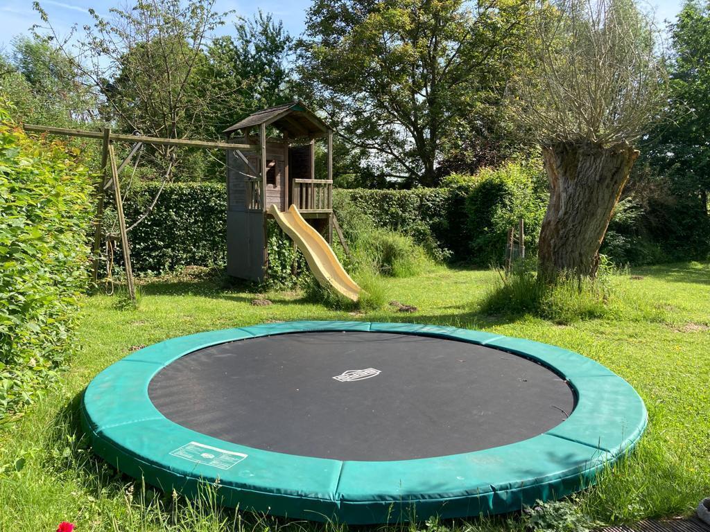 We live in a 1962 built house, in a quite street, on the countryside. We often see deer passing by in the winter en summertime! Our house has one floor with 4 bedrooms, 1 bathroom, a livingroom and kitchen. On garden level, over the full length of the house there is a garage, and a large space with billiard table and table tennis table. There are 3 terraces and a big garden.