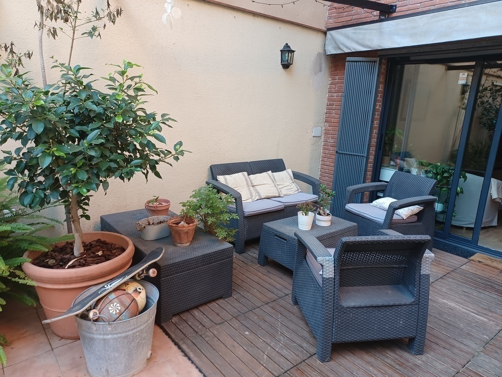The apartment we offer is located nearby the Sagrada Familia (one of the most known monuments in our city). It has a total of 100m2 spread over two floors, with a patio of 100m2 with loads of plants and beautiful flowers. As it's oriented to the north-west, it is an oasis of coolness in summer and silence all year round.
