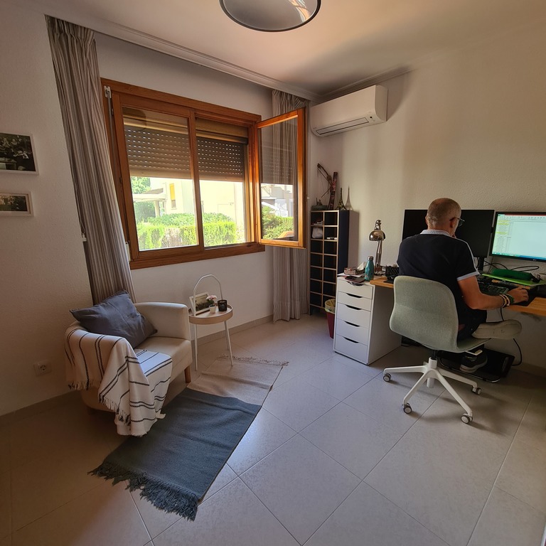 We have a semi-detached house with garden. It has 265m2 with 4 bedrooms, 1 office room, 3 bathrooms (renovated in 2024), kitchen and dining room together and attic. The kitchen is fully equiped. It has air conditioning and heating. Available WIFI and laptop. The house is very practical and we enjoy ourselves and take advantage of every corner of it.