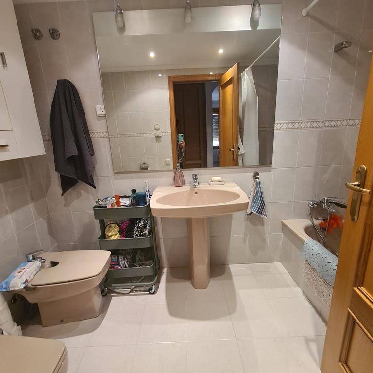 Nuestro barrio es una zona nueva residencial. En la puerta de nuestro piso tenemos zonas verdes y varios parques, alguno se ven desde casa. Al lado de casa tenemos una cafetería y una pequeña tienda de comestibles. También disponemos de más comercios en el centro del pueblo. El supermercado está a 5 minutos en coche o 10 minutos andando. En nuestro pueblo tenemos instalaciones deportivas púbicas: pistas de basket, tenis futbol, piscina descubierta y cubierta. De la misma forma podrás encontrar carril bici por dentro del pueblo y por las vías verdes entre pueblos.