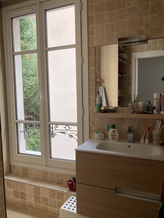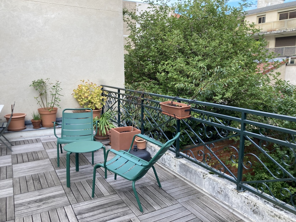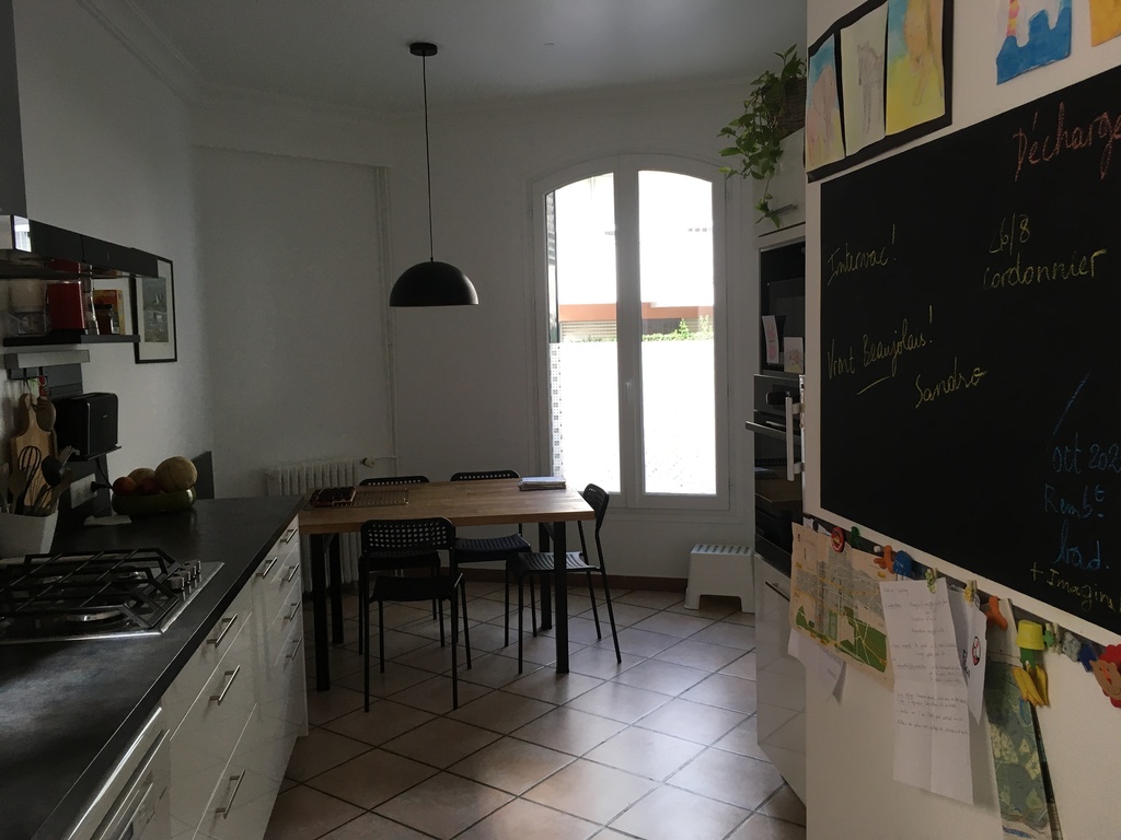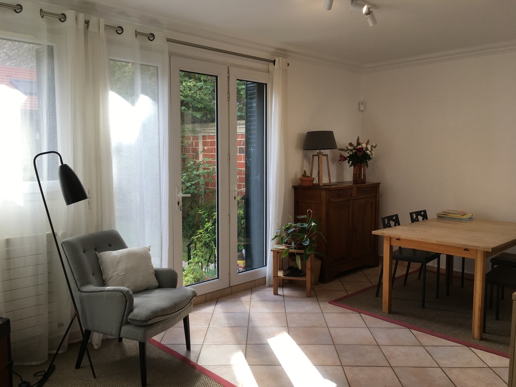 We live in a town house with a little green backyard and a terrace on the first floor allowing us to enjoy the calm. The place is really remarkably quiet with very little car traffic passing by (one-way street).