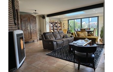 Au Rez-de-chaussée : 1 salon avec poêle à pellets et 1 salle à manger, 1 cuisine équipée (plaque de cuisson, four, micro-ondes, lave-vaisselle, frigo, congélateur), 1 chambre d’amis avec un canapé convertible 2 places, 1 salle de bain avec douche et baignoire, 1 wc et le garage.