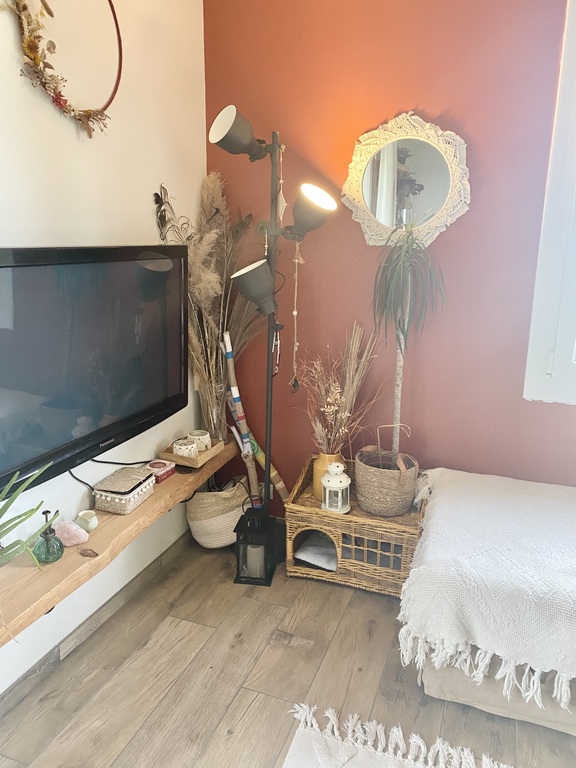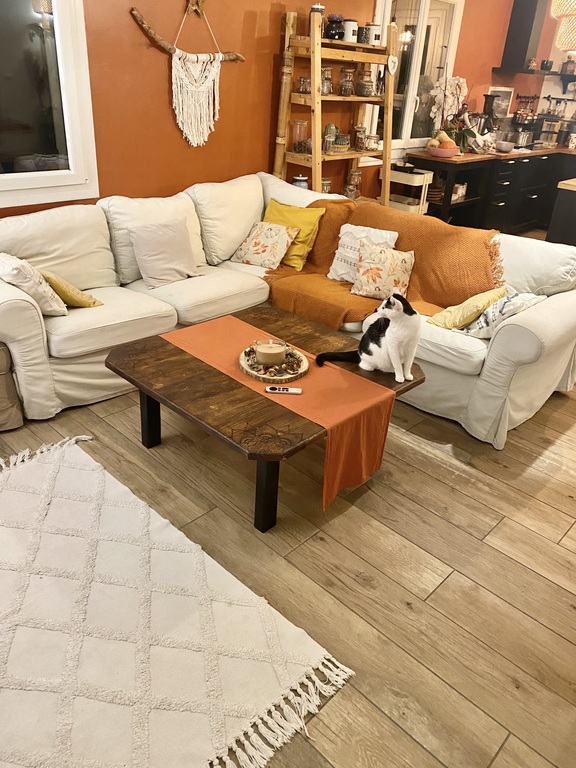 Nous vivons un petit lieu-dit plutôt calme, notre maison n'est pas mitoyenne, nous avons un vis à vis avec notre voisine mais les directions de nos maisons permettent de garder notre intimité. Nos deux voisins les plus proches ont des chiens, mais leurs jardins sont clôturés.