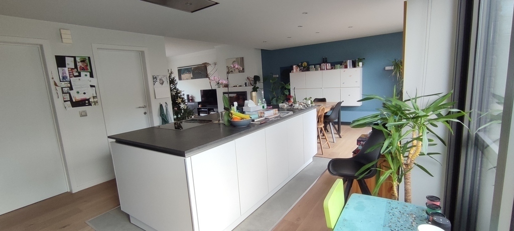 Op de beneden verdieping heb je de inkom, een open leefruimte met kookeiland, een koele berging, garage en toilet. In de garage staan de fietsen en heb je de wasmachine. Op de eerste verdieping zijn er 3 ruime slaapkamers waar er telkens 2 personen kunnen slapen en de badkamer.