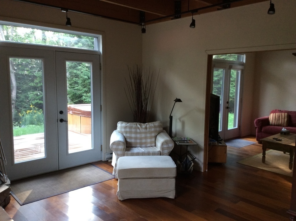 A true haven of peace with a country house with three bedrooms, a dining room, 2 bathrooms, a lounge area with a beautiful fireplace, a TV room, a large terrace, a year-round outdoor spa and great views of Lake Stukely, the surrounding mountains and sunsets. Ideal place in all seasons: access to one of the most beautiful lakes in Quebec; on-site kayaks; two bicycles; 5 minutes from Parc national du Mont-Orford (hiking trails; bike paths; cross-country skiing and snowshoeing trails; Mont-Orford ski slopes; golf); 5 minutes from the Route Verte (the largest cycling route in North America); beautiful colors of the trees during the fall; dark skies year-round while enjoying the outdoor spa; nearby points of interest: Orford Music (a cultural venue located in the heart of Parc national du Mont-Orford, which offers a high-calibre artistic experience); Lavender Blue; Magog, Lake Memphremagog, Abbey of Saint-Benoît-du-Lac, etc. 120 km from Montréal and 235 km from Québec City.
