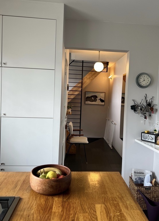 An attached house (150 m2) ca 5 km from Reykjavík city centre. The house has three floors with nice garden with a patio, and is in a row of six houses. In the basement is a large bedroom/TV-room, with a sofa-bed that can be converted to a proper double bed, and a bathroom with a washing machine a dryer. On the ground floor is living- and dining room and the kitchen. The first floor has a bedroom with a small balcony, a double bed and a small sofa-bed suitable for kids (teenagers) and a bathroom with a shower.