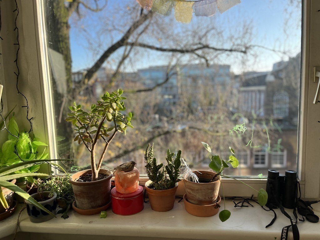 We love bird watching and are lucky enough to have a lively tree in front of our window.