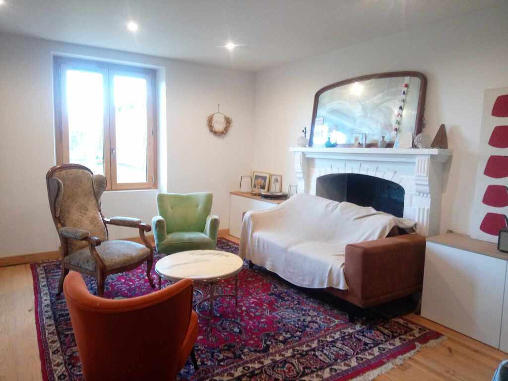 Nous avons un grand jardin entouré de champs et un lac en bas de chez nous. Idéal pour une vie au calme, déconnectée de la ville, avec des ballades à pied ou à vélo.