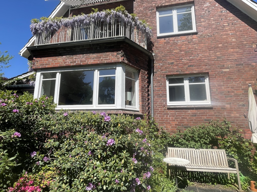 Unser Backsteinhaus ist mehr als hundert Jahre alt und von einem schönen Garten mit Rhododendren und alten Bäumen umgeben. Es liegt zwischen den grünen Hamburger Stadtteilen Blankenese und Nienstedten. Hirschpark und Elbe, Geschäfte und Restaurants sind fußläufig zu erreichen. Mit der S-Bahnlinie 1 oder dem Auto braucht man nicht mehr als eine halbe Stunde in die