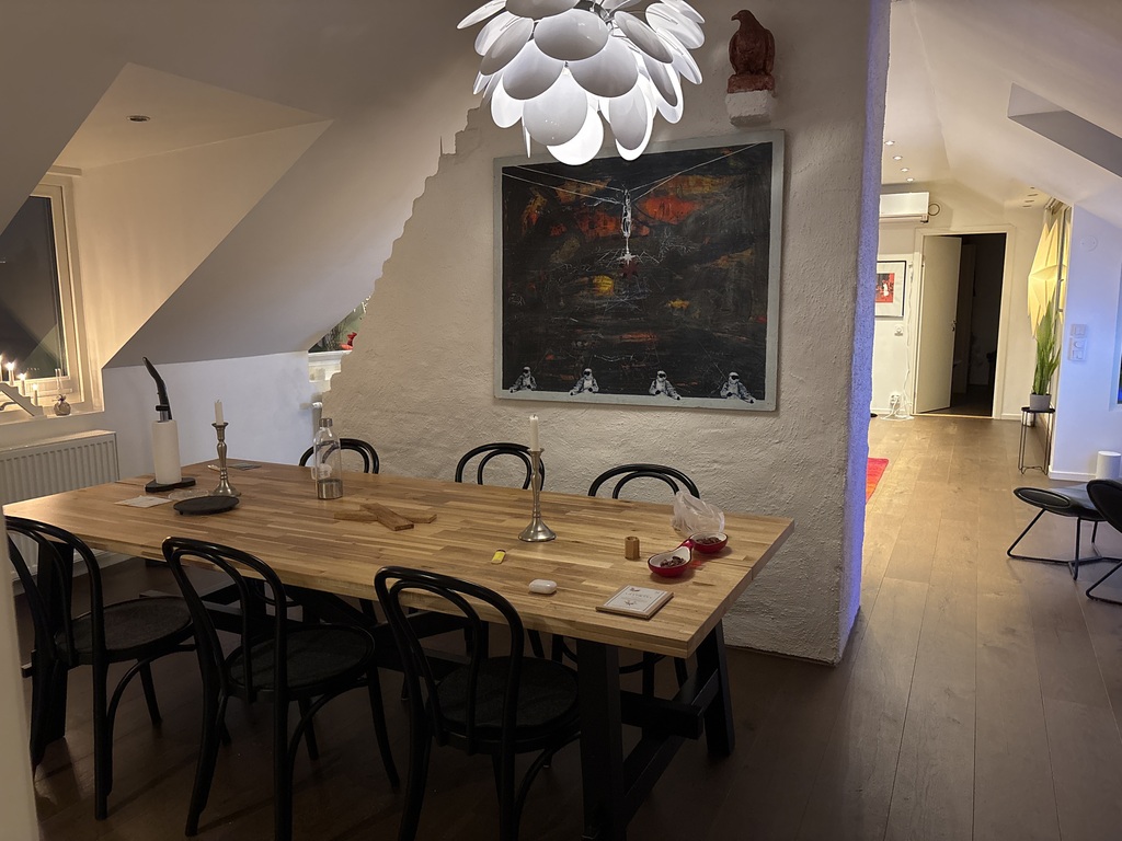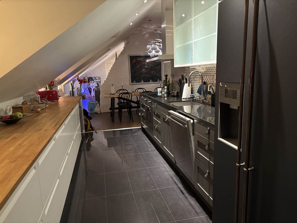 Balcony, sauna and fireplace in an attic apartment in attractive Hornstull. Close to subway, green areas and bath. With the pulse of the big city with lots of restaurants and bars around the corner.
