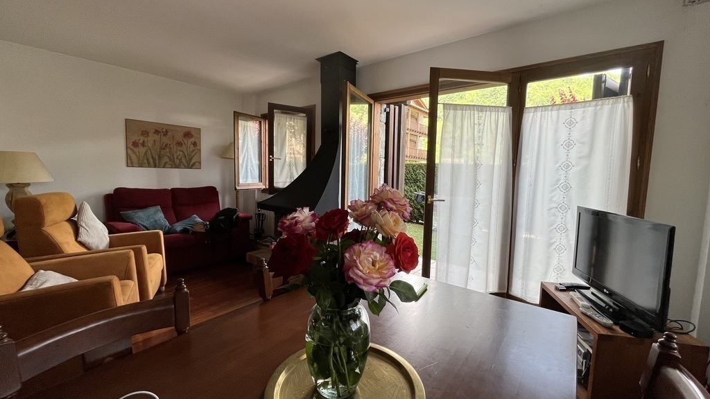 Se trata de un apartamento (planta baja) de 80 m2 con un pequeño jardín, en una bonita urbanización típica del Pirineo, de casas de piedra y madera de aspecto rústico. En un entorno de gran belleza, por sus hermosos pueblos, así como por el atractivo de su naturaleza.