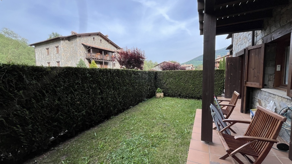 Una planta baja con un pequeño jardín en un bello pueblo del Pirineo catalán