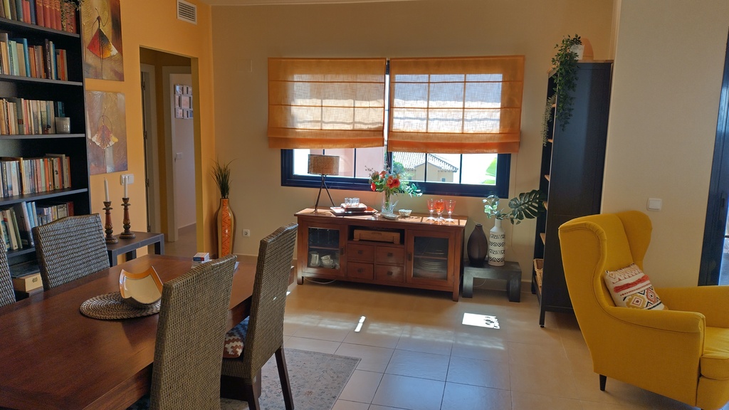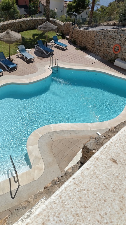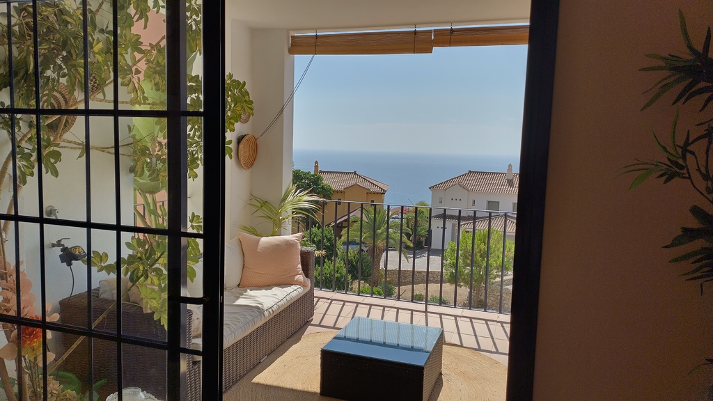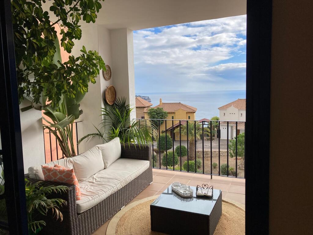 Two bedroom/two bathroom, 2nd floor apartment with sitting room/dining room and separate kitchen with laundry room. Terrace with sea and village views. Situated on the edge of the Cerro Gordo national park. As well as the communal pool, there is a padel court and basketball court within the gardens to the apartment.