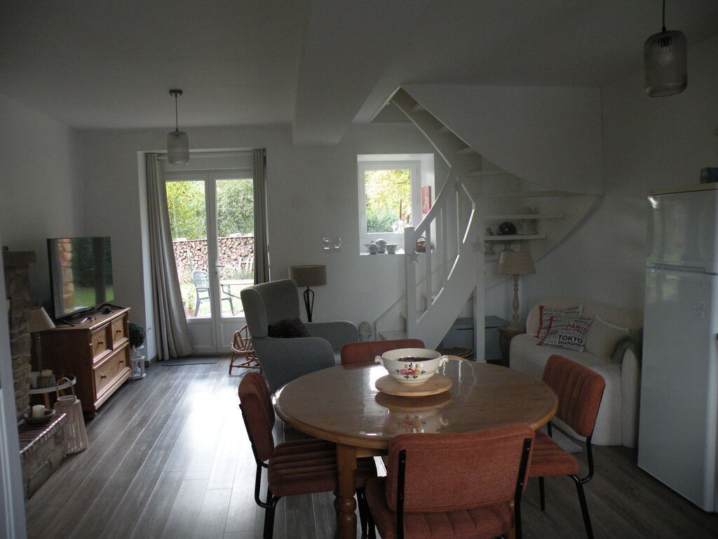 Ma maison est petite mais confortable avec cuisine aménagée sur salon et WC au rez-de-chaussée. . A l'étage, il y a 2 chambres avec chacune un lit de 140cm et une salle d'eau. Wifi.