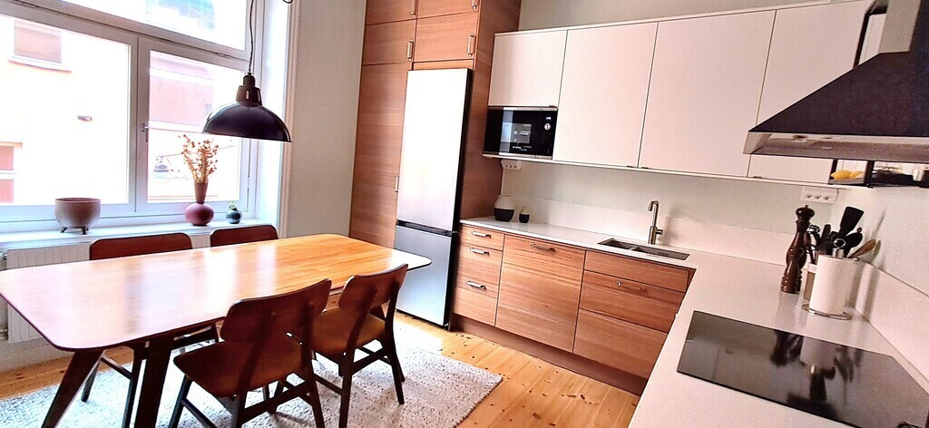 The apartment is a 75 sqm 3-room apartment from 1916 with a modern standard and a great location.