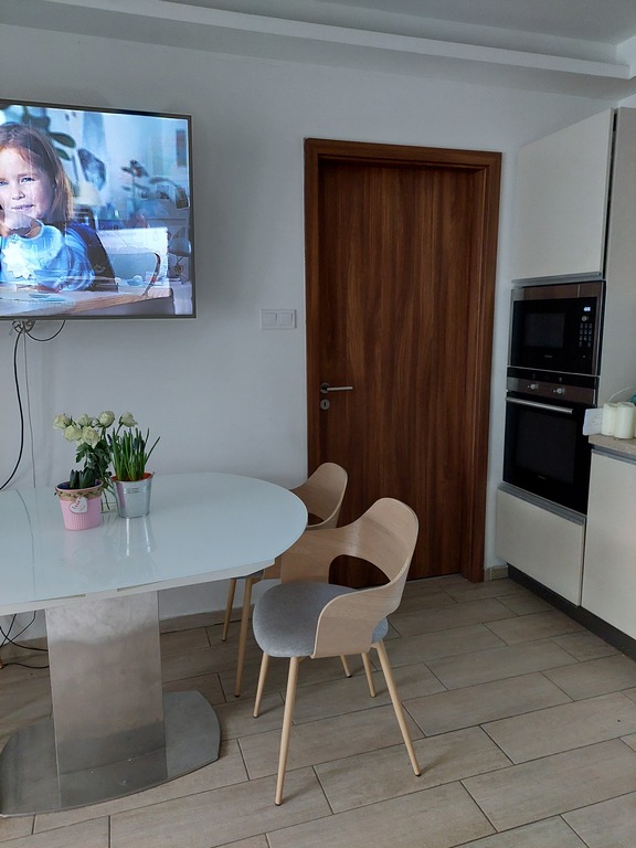 The apartment is modern with three rooms. Well equipped and clean. Quiet apartment with a large flowered terrace and balcony. Living room and three bedrooms.