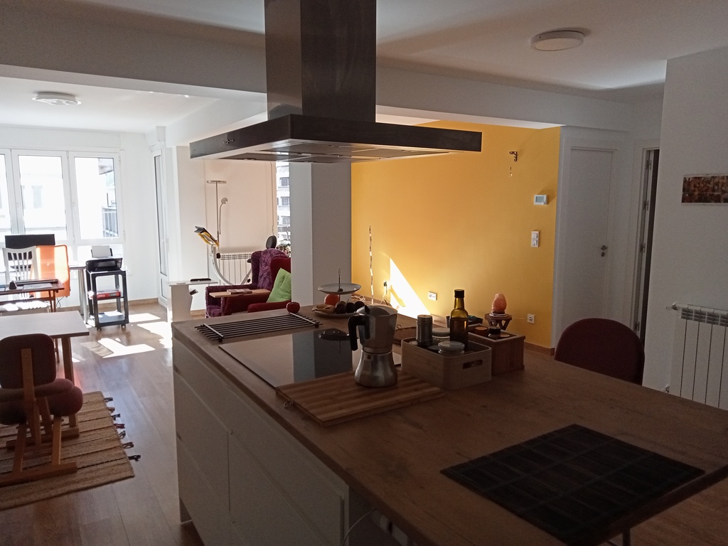 Mi apartamento está reformado, es un séptimo con ascensor, tiene todas las comodidades del centro de San Sebastián: muchos supermercados, fruterías, farmacias, bares, se llega enseguida a La Concha, todo puede hacerse a pie, fantástico servicio público de tren y autobús para conocer la comarca de Gipuzkoa, el vecino Bilbao, Navarra, la ciudad está muy cerca de la frontera con Francia.
