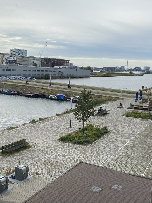 The area is upcoming. There is a lot of building activity. We look out over a broad canal where a sustainable floating neighborhood is laying in, which is called "Schoonschip". Round the corner are several self-build plots and it is fascinating to see how inventive people are. The nearest shops are 1km away. There are several restaurants nearby. We leave you a list with all the nice hang-outs.